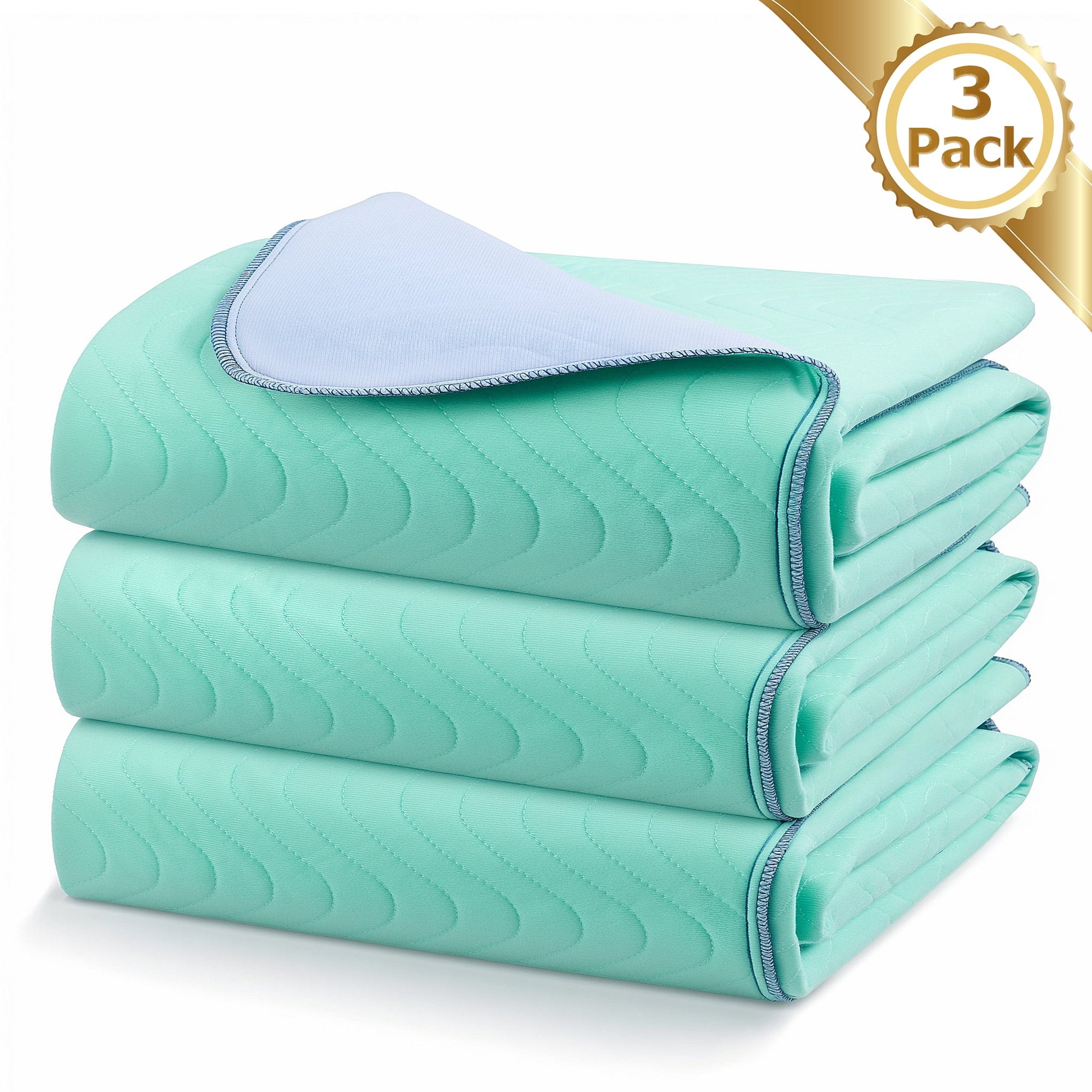 ALLJOY 3 Pack Waterproof Reusable Bed Pads - Washable Incontinence Underpads for Adults, Elderly, Kids, and Pets, Soft Quilted Mattress Protector (34”x36”)
