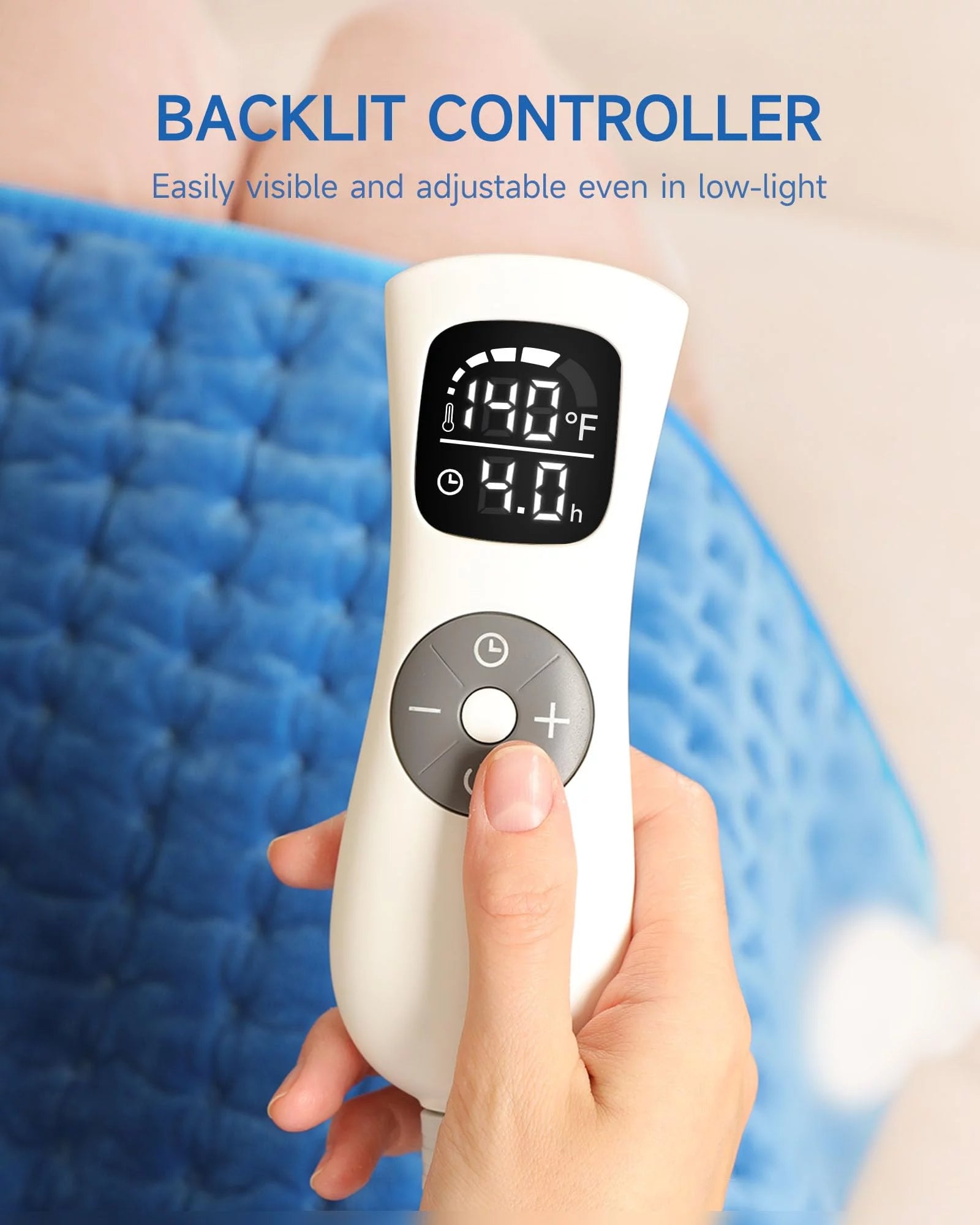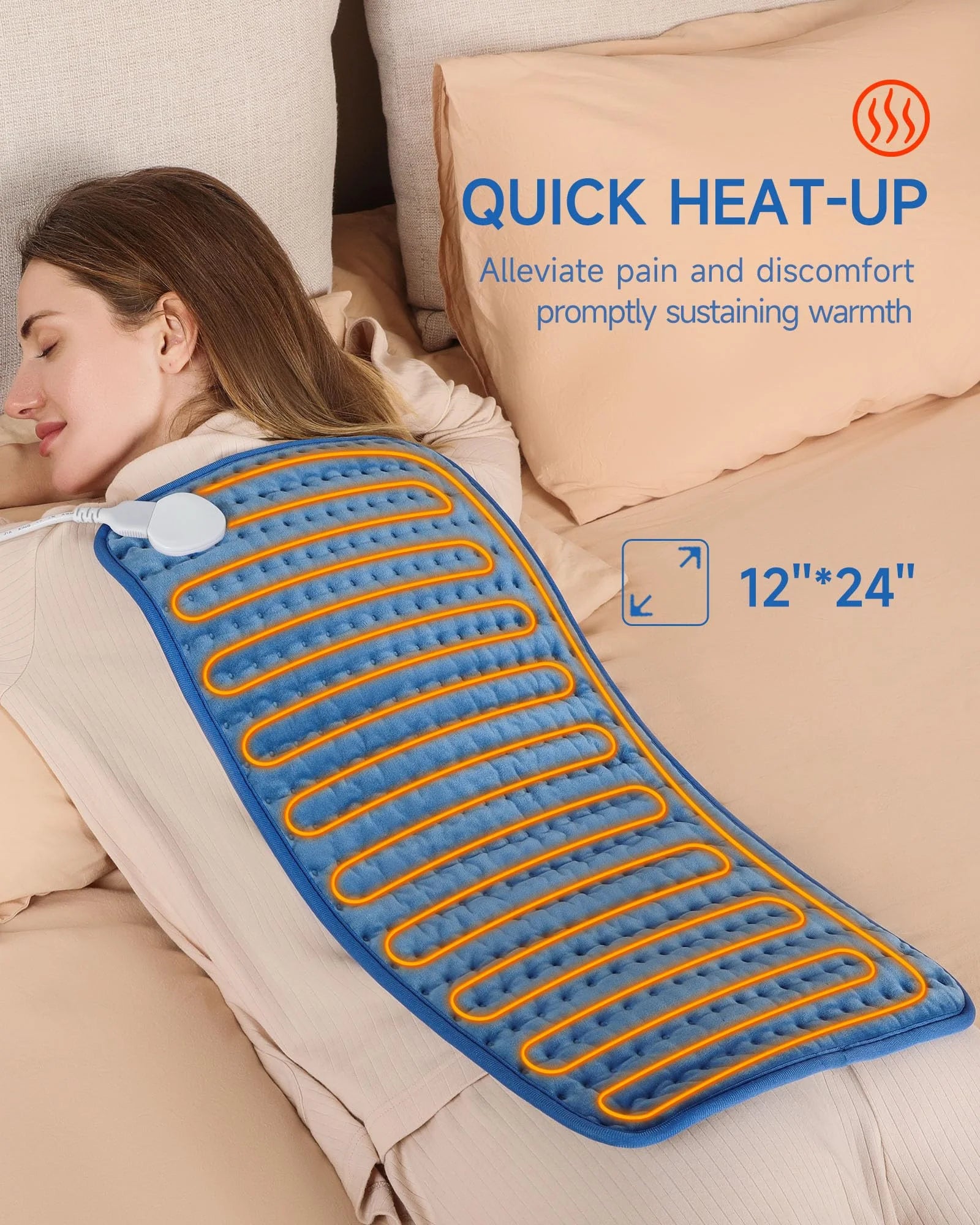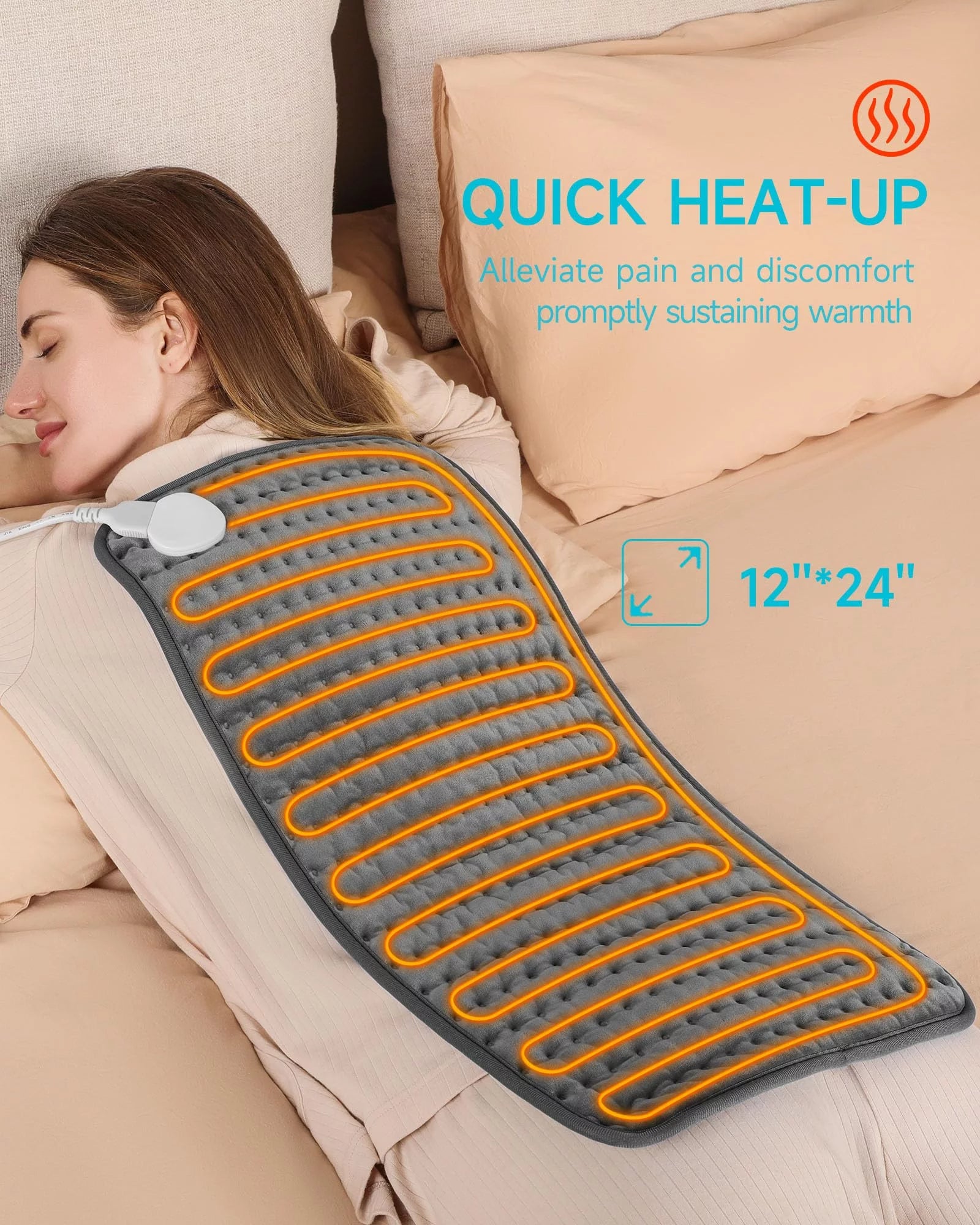ALLJOY Electric Heating pad for Back/Shoulder/Neck/knee/leg Pain, Cramps and Arthritis Relief, Fast Heating Settings, Auto-Off, Machine Washable, Moist Dry Heat Options, Extra Large 12"x24", Grey