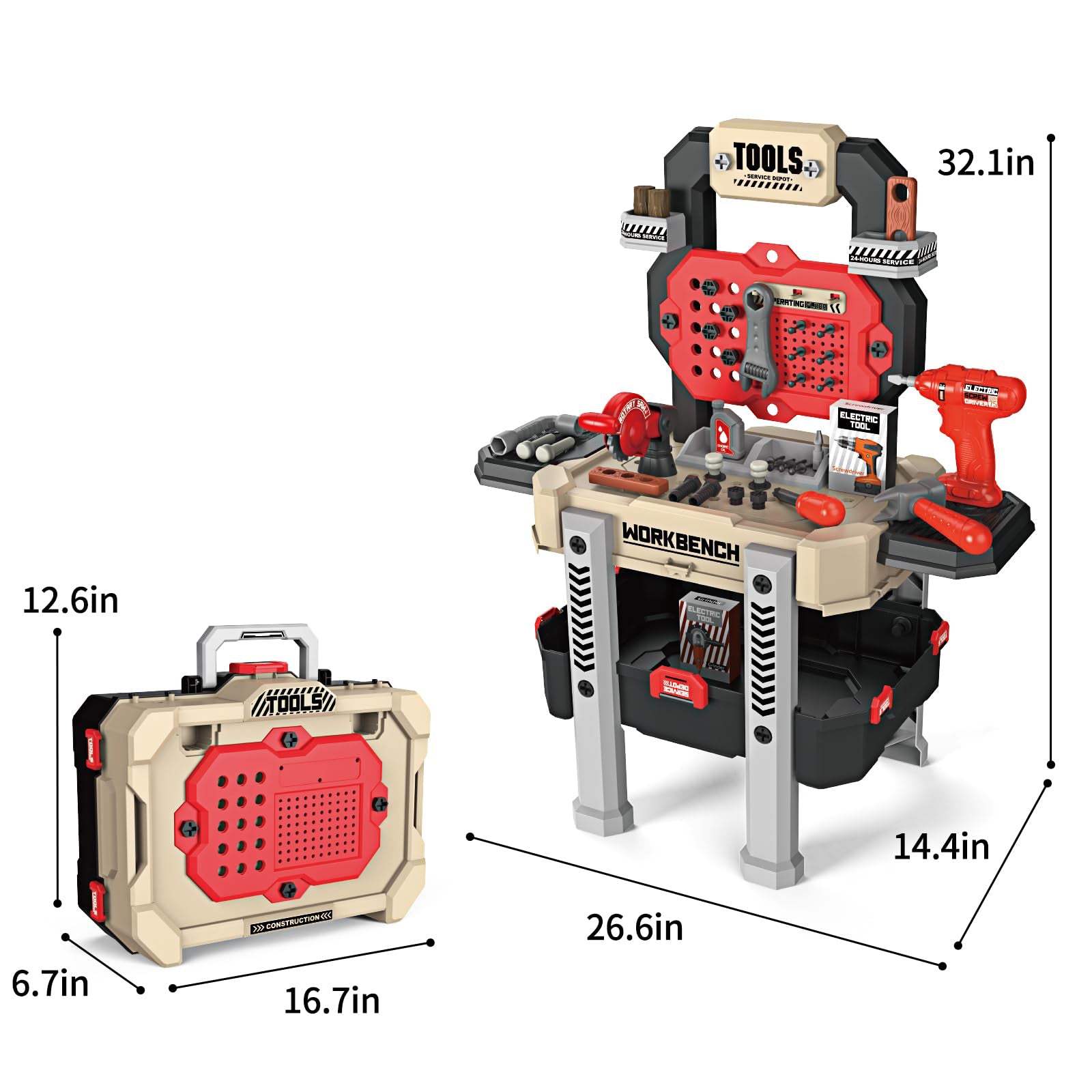 ALLJOY Kids Tool Bench with Realistic Tools and Electric Drill, 79 Pcs Transformable Kids Tool Set with Clothes, Toddler Tool Bench Pretend Play Learning Gift for Boys & Girls Age 3-5