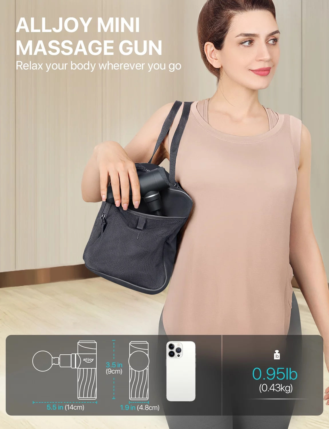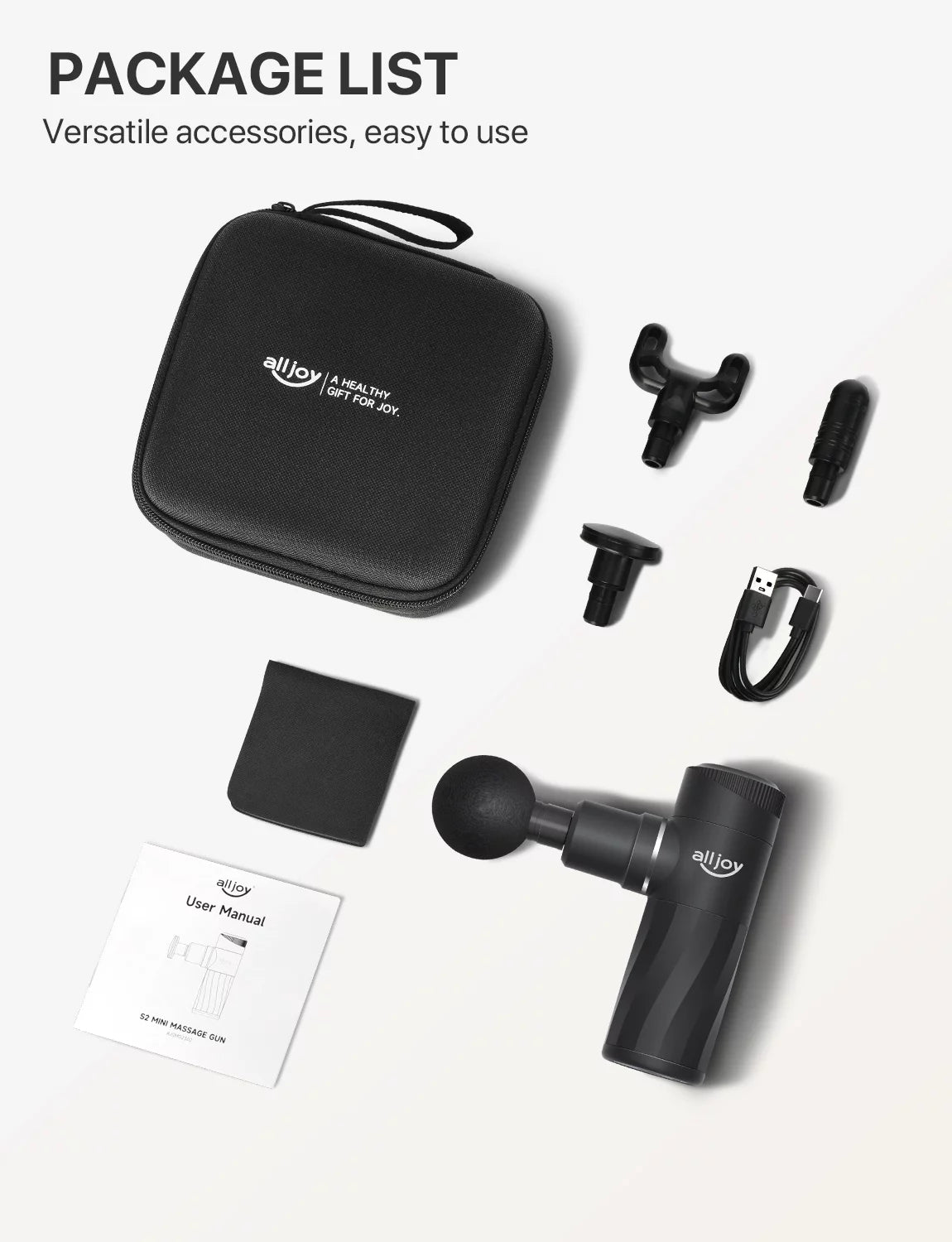 ALLJOY Mini Massage Gun Deep Tissue, Powerful Percussion Muscle Massager Gun with 4 Attachments, 4 Speed Settings, Compact Sports Handheld Massager for Muscles Neck Back Arms